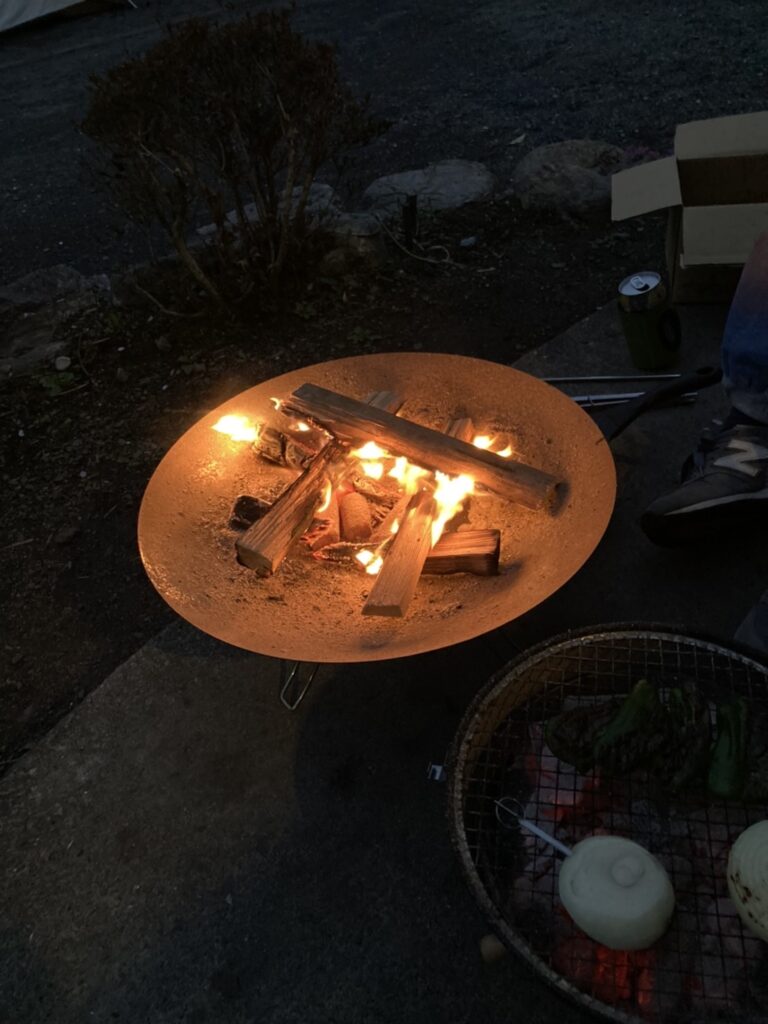 夕飯は焼肉を食べ、焚火をみんなで囲み