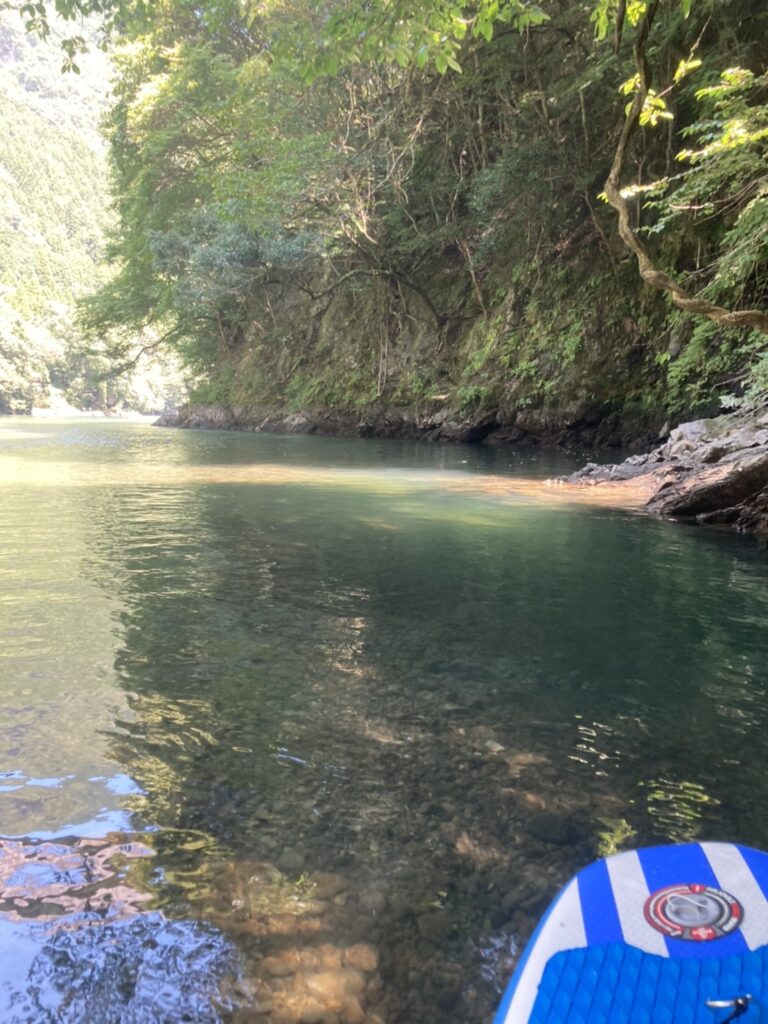 上流のほうに漕いで行くと、流れがそこそこ出てきてスピードダウン
